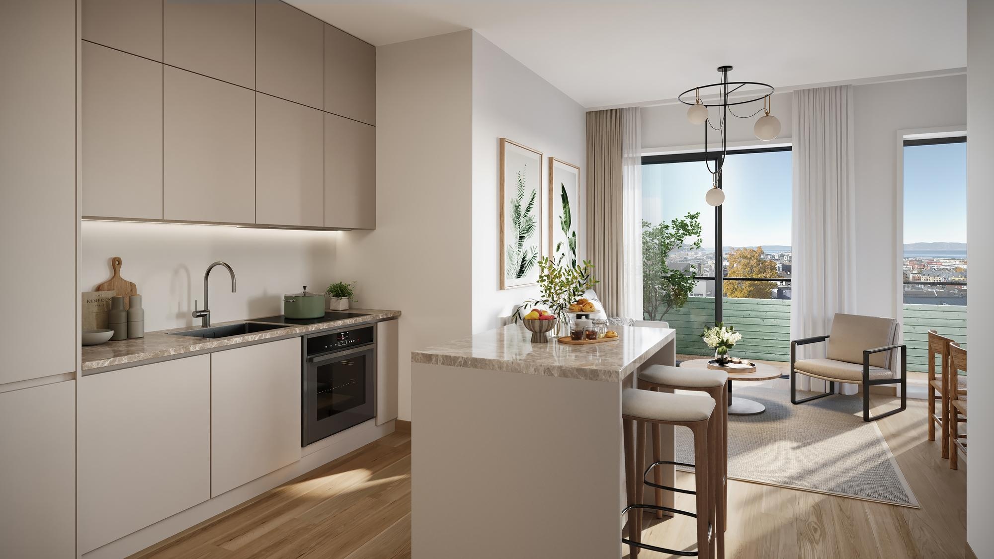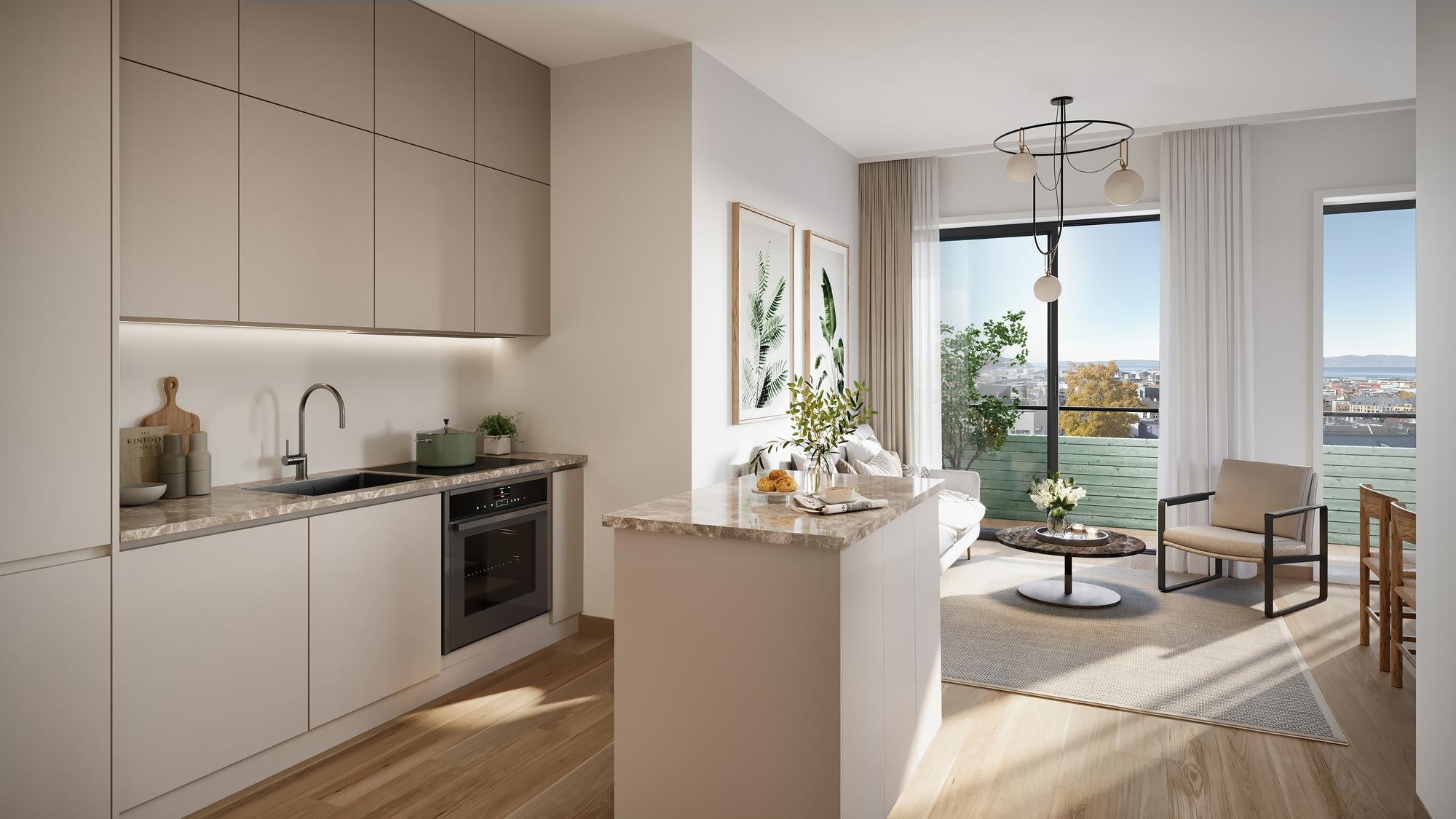 Når du vil slappe av, kan du trekke deg tilbake til leiligheten din, skjermet fra byens yrende liv. På Rosenborgs østside får du avstand til hovedfartsårene og kan nyte privatlivets fred. Arkitekten har plassert både bygg og vinduer for å gi deg minst mulig innsyn – og mest mulig lys. Fra terrassen eller balkongen kan du nyte utsikten mot fjorden eller den sjarmerende trebebyggelsen på Rosenborg og Møllenberg – alt etter hvilken leilighet du går for. Men uansett hvilken utsikt du velger, kan du lene deg tilbake og nyte sola når den seiler inn fra sørvest.